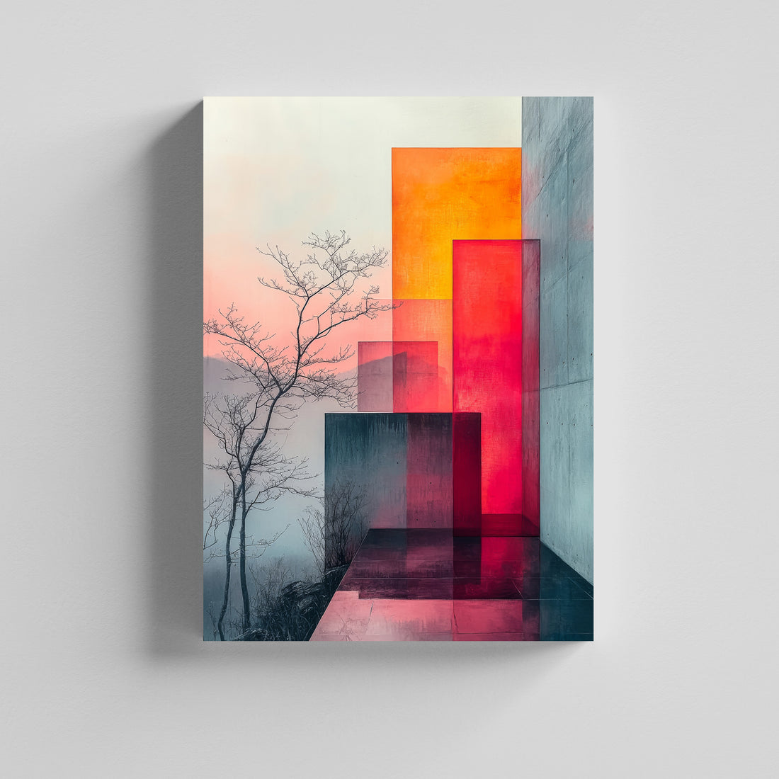 Prism Horizon Glass & Concrete Modern Architectural Wall Art Canvas