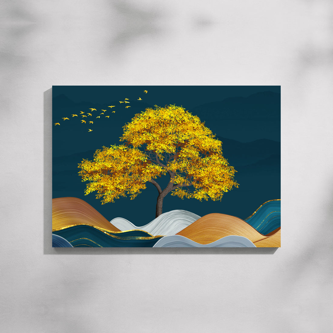 Golden Stillness Tree of Life Morden Art Canvas Painting