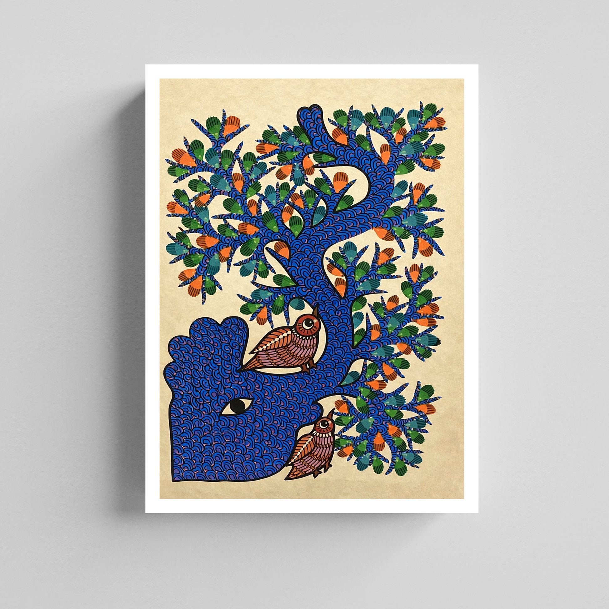 The birds resting on the branches represent peace, wisdom, and harmony, while the Tree of Life symbolises growth, strength, and connection. Set against a soft neutral background, the bold blue palette stands out beautifully without overpowering the space—making it ideal for modern Indian interiors.